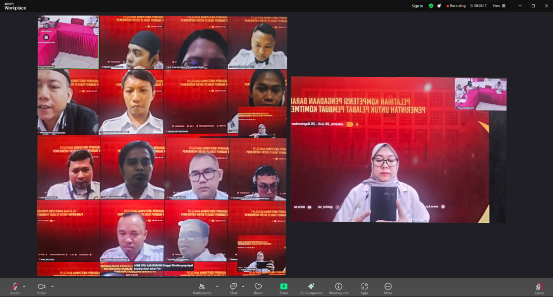 BANDUNG — Sebanyak 28 peserta dari KPU Provinsi Jawa Barat dan 27 KPU Kabupaten/Kota se-Jawa Barat mengikuti pembukaan Pelatihan Kompetensi Pengadaan Barang dan Jasa (PBJ) Pemerintah untuk Pejabat Pembuat Komitmen (PPK) Tipe C Tahun 2025 secara daring melalui Zoom Meeting, Senin (28/7/2025). Kegiatan ini diselenggarakan oleh Sekretariat Jenderal KPU RI bekerja sama dengan Lembaga Kebijakan Pengadaan Barang/Jasa Pemerintah (LKPP) melalui platform pembelajaran elearning.lkpp.go.id.