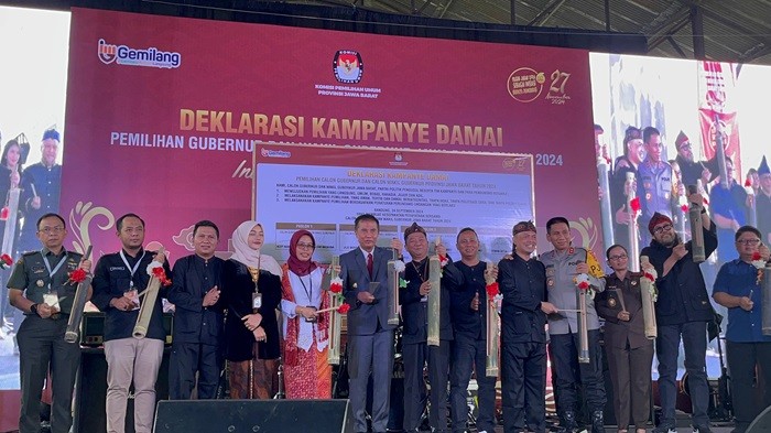 BANDUNG - Keempat pasangan calon gubernur-wakil gubernur Jawa Barat dalam Pemilihan Gubernur (Pilgub) Jabar 2024, resmi mendeklarasikan kampanye damai.