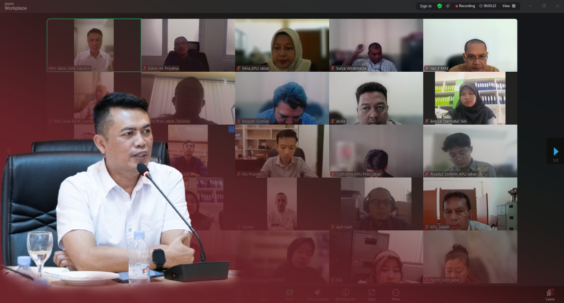 BANDUNG — Komisi Pemilihan Umum (KPU) Provinsi Jawa Barat melaksanakan apel pagi rutin pada Senin (8/9/2025) secara daring. Apel diikuti oleh anggota KPU, Kadiv SDM dan Litbang, Abdullah Sapi'i, pejabat struktural, pejabat fungsional, serta pegawai di lingkungan KPU Jawa Barat.