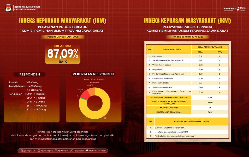 IKM Layanan Publik KPU Jabar Semester I 2025 Capai 87,09% (Baik)