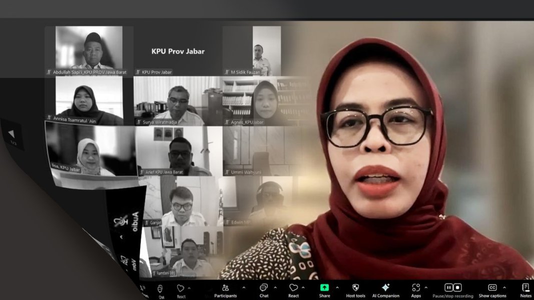 BANDUNG - KPU Provinsi Jawa Barat melaksanakan apel pagi rutin melalui saluran zoom meeting, pada Senin (6/10). Kegiatan ini dipimpin Ketua Divisi Data dan Informasi, Ummi Wahyuni, dan diikuti jajaran pimpinan serta seluruh pegawai KPU Jawa Barat. Hadir antara lain Ketua Divisi SDM dan Litbang, Abdullah Sapi’i, Ketua Divisi Teknis Penyelenggaraan, Adi Saputro, serta Sekretaris Eko Iswantoro. Petugas apel berasal dari Bagian Keuangan, Umum, dan Logistik.