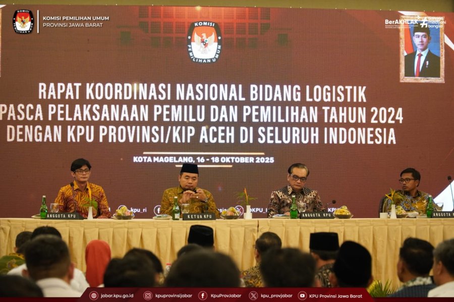 MAGELANG - KPU Provinsi Jawa Barat menghadiri Rapat Koordinasi Nasional (Rakornas) Bidang Logistik Pasca Pelaksanaan Pemilu dan Pemilihan Tahun 2024 di Kota Magelang, Kamis (16/10/2025).
