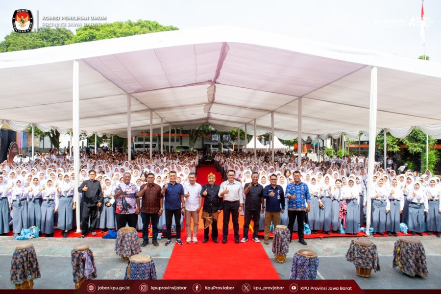 CIMAHI – KPU Provinsi Jawa Barat bersama Badan Kesatuan Bangsa dan Politik Provinsi Jawa Barat menyelenggarakan kegiatan Pendidikan Pemilih Berkelanjutan dengan Pendekatan Budaya di SMK Negeri 1 Cimahi, Selasa (25/11/2025). Acara ini mengusung tema “Ngajaga Budaya, Ngamumule Demokrasi, Ngawujudkeun Jabar Istimewa”, yang memadukan seni, demokrasi, serta identitas lokal sebagai sarana edukasi bagi pemilih pemula.