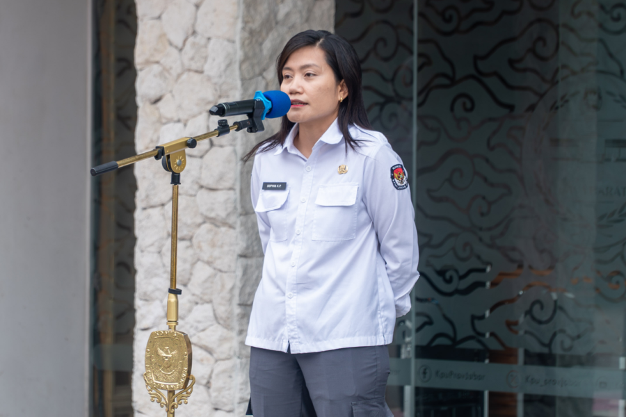Apel pagi tersebut dipimpin oleh Kepala Bagian Teknis Penyelenggaraan dan Hukum KPU Provinsi Jawa Barat, Sophia Kurniasari Purba, selaku pembina apel. Sementara itu, Kepala Sub Bagian Data dan Informasi, Ramdhani, bertindak sebagai pemimpin apel dengan petugas apel berasal dari Sub Bagian Data dan Informasi.
