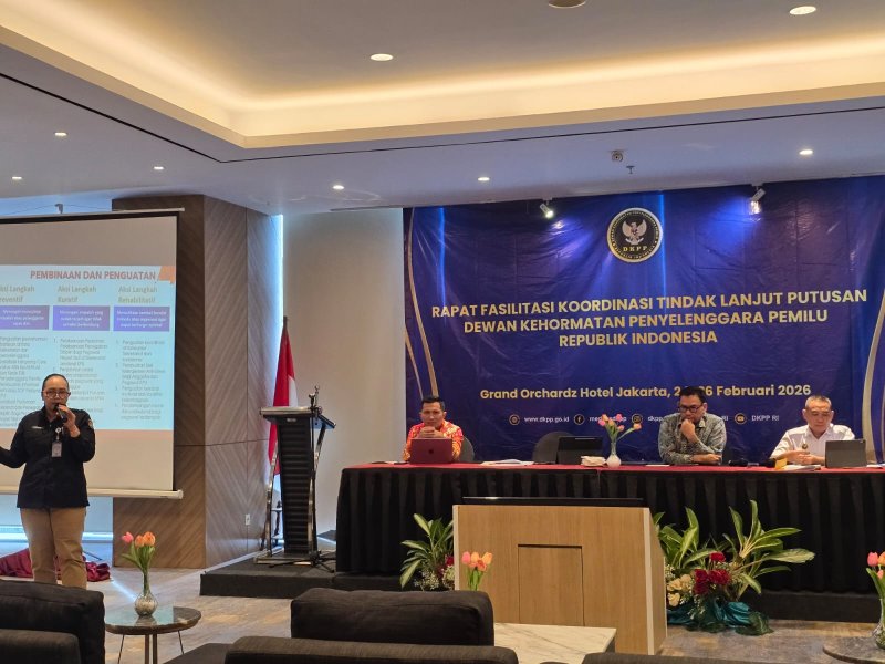 JAKARTA — Dewan Kehormatan Penyelenggara Pemilu (DKPP) RI menggelar Rapat Fasilitasi Koordinasi Tindak Lanjut Putusan Pelanggaran Kode Etik Penyelenggara Pemilu di Hotel Grand Orchardz Rajawali Kemayoran, Jakarta, pada 24–26 Februari 2026. Kegiatan yang dihadiri perwakilan KPU dan Bawaslu dari berbagai daerah ini bertujuan menyamakan persepsi antar lembaga penyelenggara pemilu dalam menindaklanjuti putusan DKPP secara konsisten dan akuntabel.