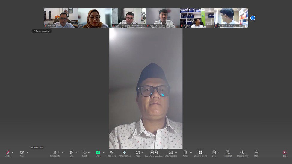 Bandung – Komisi Pemilihan Umum (KPU) Provinsi Jawa Barat melaksanakan apel pagi pada Senin, 23 Juni 2025 secara daring yang diikuti oleh jajaran Pimpinan dan seluruh sekretariat. Bertindak sebagai pembina apel, Kepala Divisi Sosialisasi, Pendidikan Pemilih, dan Partisipasi Masyarakat. Hedi Ardia, menyampaikan amanat yang menekankan pentingnya kolaborasi antar generasi di lingkungan kerja.