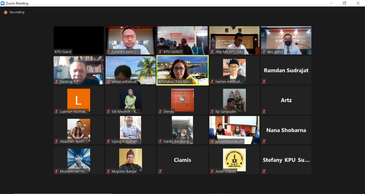 Garut, jabar.kpu.go.id --- KPU Kabupaten Garut menyelenggarakan capacity building secara daring bertajuk strategi pemutakhiran data pemilih. Acara ini terselenggara dengan narasumber Anggota KPU Provinsi Jawa Barat yakni Titik Nurhayati pada Selasa (09/03/21).