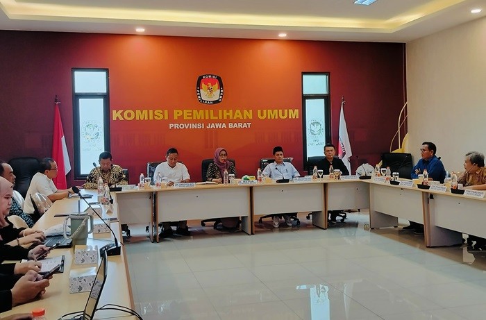 BANDUNG - Komisi Pemilihan Umum (KPU) Jawa Barat menggelar rapat koordinasi (rakor) bersama tim perumus debat yang berlangsung di Kantor KPU Jabar, Rabu (9/10/2024).