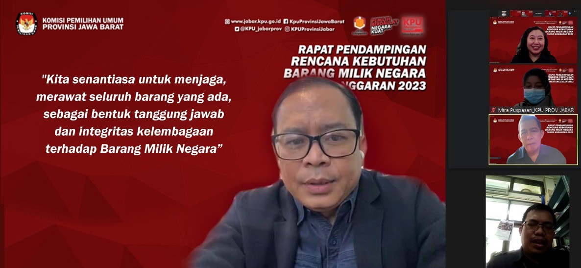 Bandung, kpujabar.go.id,-Pengelolaan asset Badan Milik Negara (BMN) masih menjadi persoalan krusial di Komisi Pemilihan Umum (KPU) Provinsi Jawa Barat. Hal tersebut mengemuka pelaksanaan Rapat Pendampingan Rencana Kebutuhan Barang Milik Negara Tahun Anggaran 2023, Selasa, (7/9/2021).