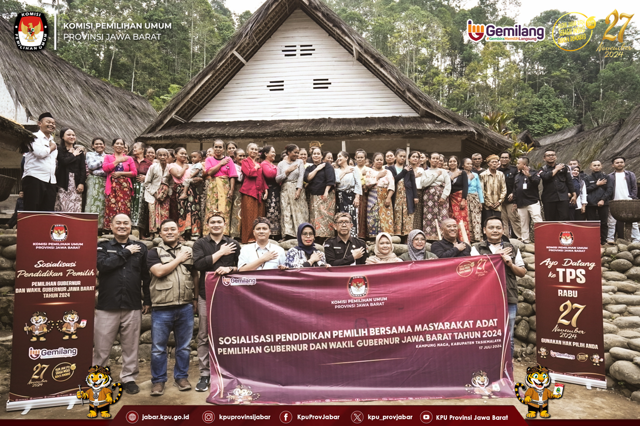 KPU Provinsi Jawa Barat melaksanakan Kegiatan Sosialisasi Pendidikan Pemilih Pemilihan Gubernur dan Wakil Gubernur Jawa Barat Tahun 2024 bersama masyarakat adat Kampung Naga, Kabupaten Tasikmalaya, Rabu (17/07/2024).
