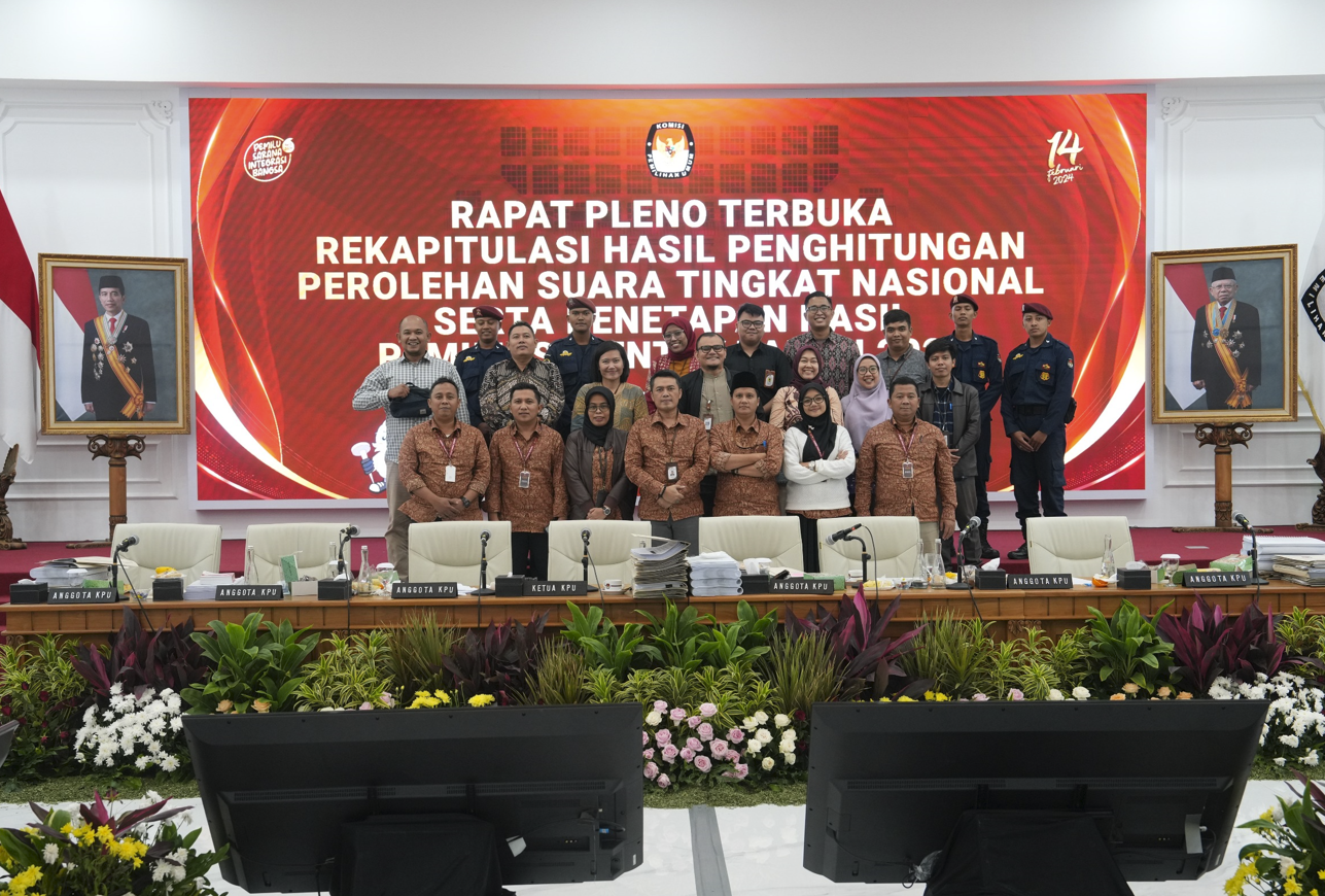 Jakarta, jabar.kpu.go.id - Komisi Pemilihan Umum Provinsi Jawa Barat Menyelesaikan Proses Rekapitulasi Hasil Penghitungan Perolehan Suara secara berjenjang dengan Mengikuti Rapat Pleno Terbuka Rekapitulasi Hasil Penghitungan Suara Tingkat Nasional serta Penetapan Hasil Pemilu Serentak Tahun 2024 pada hari Selasa s.d Rabu (19-20 Maret 2024).