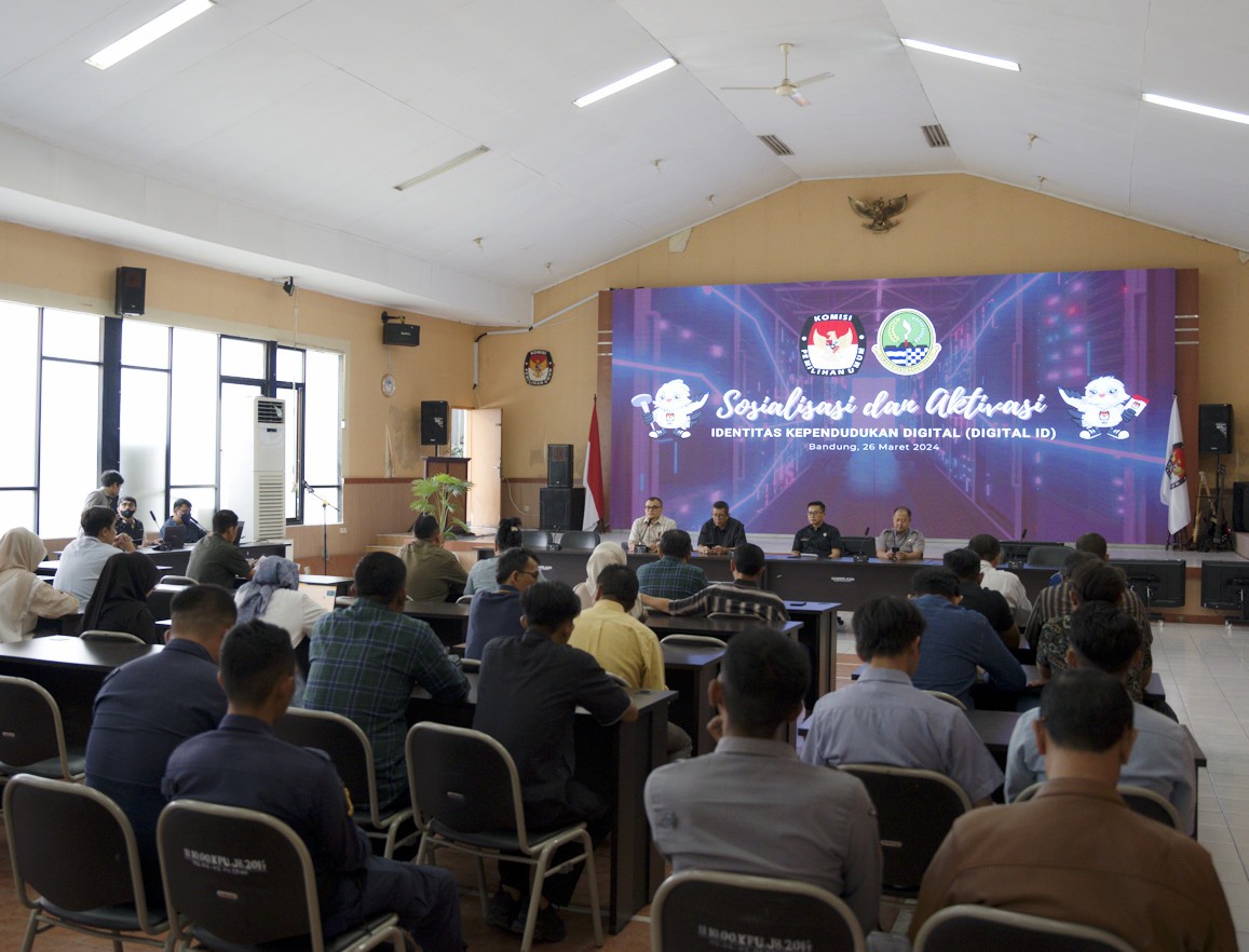 Bandung, jabar.kpu.go.id - Komisi Pemilihan Umum Provinsi Jawa Barat bekerjasama dengan Dinas Kependudukan dan Pencatatan Sipil Provinsi Jawa Barat Menyelenggarakan Sosialisasi dan Aktivasi identitas kependudukan digital (Digital ID), Selasa (26/03/2024)