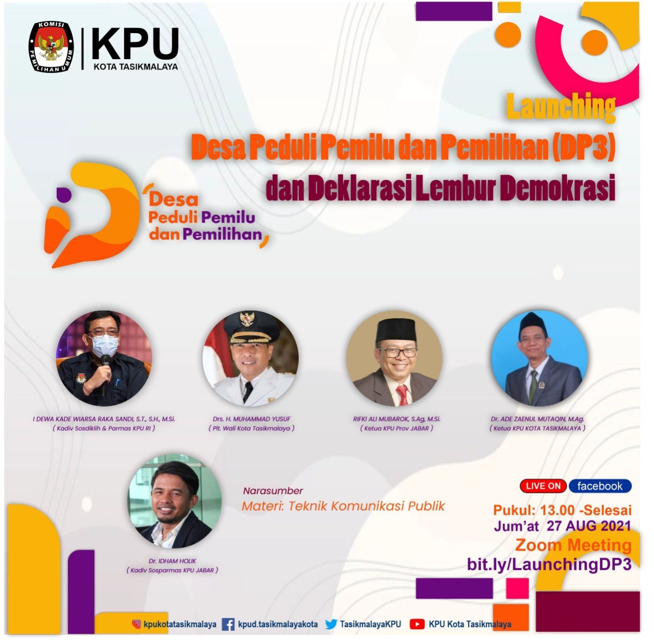 Tasikmalaya, jabar.kpu.go.id – Komisi Pemilihan Umum (KPU) RI melakukan peluncuran dan deklarasi Desa Peduli Pemilu dan Pemilihan (DP3) dan Lembur Demokrasi di Kota Tasikmalaya, Jumat (27/8/2021). Meski melalui daring, Launching salah satu program unggulan KPU RI menuju pemilu dan pemilihan serentak nasional 2024 itu berlangsung meriah dan lancar.