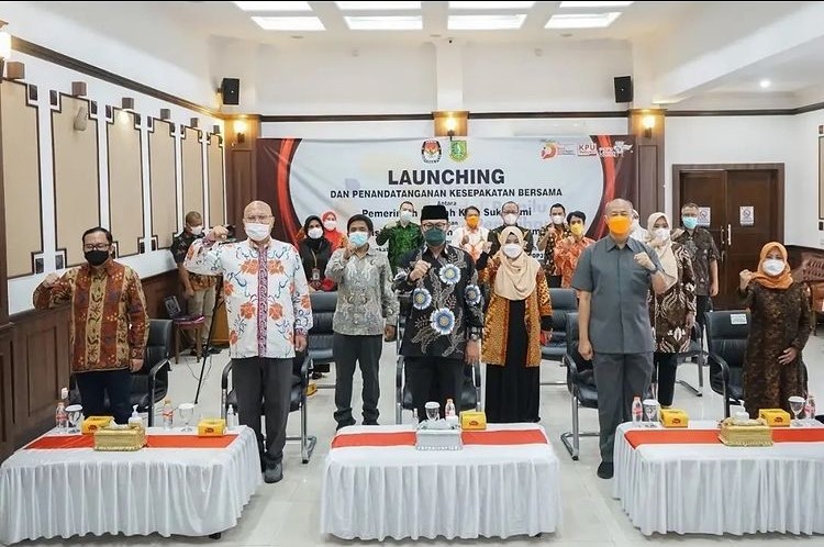 Sukabumi, 24/09/2021 – Komisi Pemilihan Umum Kota Sukabumi melakukan kerja sama dengan Pemerintah Daerah Kota Sukabumi dilanjutkan dengan Launching Program Desa/Kelurahan Peduli Pemilu dan pemilihan (DP3) yang dituangkan dalam bentuk Penandatanganan Kesepakatan Bersama bertempat di Ruang Pertemuan Pemda Kota Sukabumi. Acara dihadiri oleh Bapak Ilham Saputra, S.IP selaku Ketua KPU Republik Indonesia, Bapak Rifqi Ali Mubarok, M.Si. selaku Ketua KPU Provinsi Jawa Barat, Bapak Dr. H. Idam Holik, S.E., M.Si. selaku Komisioner KPU Provinsi Jawa Barat, Bapak H. Achmad Fahmi, S.Ag., M.M.Pd. selaku Wali Kota Sukabumi, Ibu Dra. Sri Utami, M.M. selaku Ketua KPU Kota Sukabumi, dan Keempat Anggota KPU Kota Sukabumi, KPU Kabupaten/Kota yang ada di Jawa Barat. Acara ini juga melibatkan beberapa pihak penting lainnya yang hadir secara daring (dalam jaringan) seperti Camat, Lurah, Kapolsek, Danramil, Forkopimda dan instansi terkait.