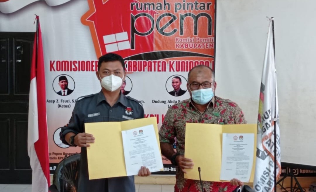 Dalam rangka menguatkan konsolidasi demokrasi pasca helatan pemilu serentak 2019 dan pemilihan kepala daerah tahun 2020, komisi Pemilihan Umum (KPU) Kabupaten kuningan melakukan kegiatan nota kesepahaman atau MoU dengan pengurus Musyawarah Guru Mata Pelajaran (MGMP) PKn SMA/MA se-kabupaten Kuningan, Kegiatan ini berkat inisiasi MGMP PKn SMA/MA dengan mengunjungi kantor KPU Kabupaten Kuningan pada hari Kamis, 22 April 2021. Kegiatan KPU ini merupakan implementasi dari penguatan institusi yang menjadi kunci terbangunnya sinergitas kelembagaan sebagaimana surat edaran KPU provinsi jawa Barat nomor 10/PP.06.3.SD/32/Prov/I/2020 perihal konsolidasi Institusional dan kemitraan strategis. Hadir dalam kegiatan ini yaitu Asep z fauzi, S.Pd.I, ketua KPU Dudung abdu Salam, M.Pd divisi SDM, Parmas dan Sosdiklih, Asep Budi Hartono, M.Pd selaku ketua divisi Data. Dan ketua divisi teknis penyelenggaraan, Maman Sulaeman, S.Hum .