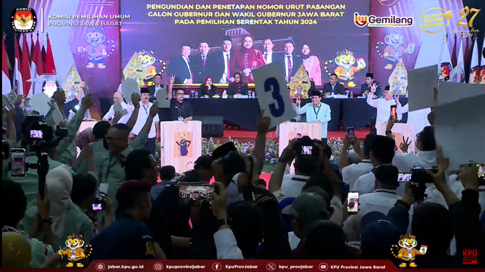 "Berdasarkan pengundian nomor urut pasangan calon gubernur dan wakil gubernur Jawa Barat ditetapkan nomor urut pasangan calon," tandasnya.