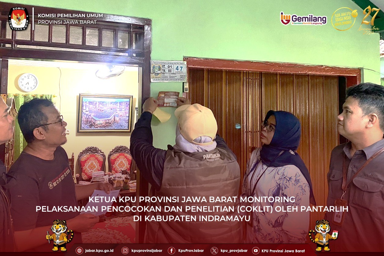 Kadiv Data dan Informasi KPU Jawa Barat Ahmad Nur Hidayat mengatakan, hingga hari ke-24 pelaksanaan coklit yang dilakukan Pantarlih telah mencapai 35.716.120. Sebagai provinsi dengan jumlah pemilih terbanyak di Indonesia tentu saja secara nasional ini merupakan sebuah pencapaian luar biasa.