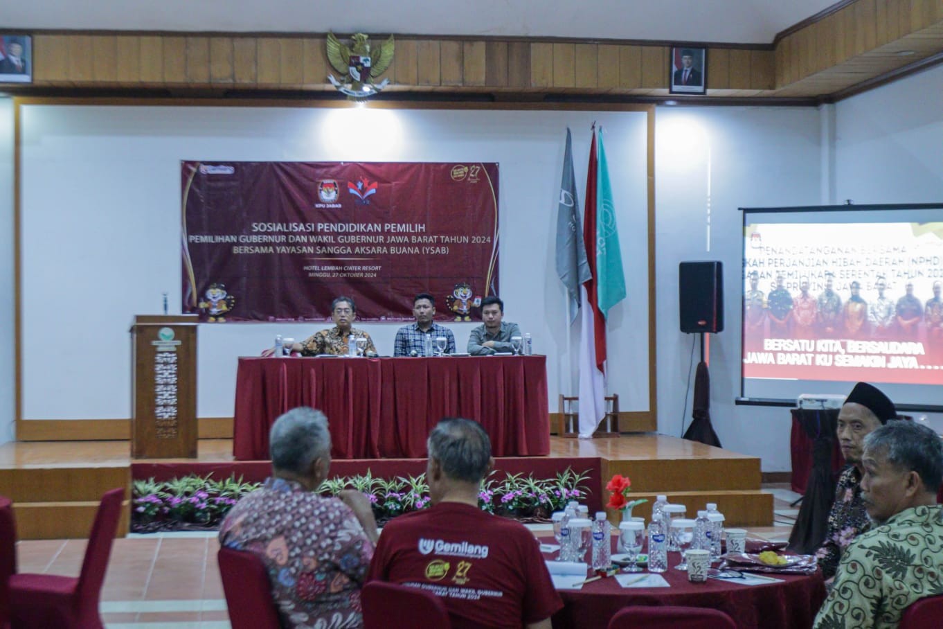 SUBANG – Dalam rangka menyukseskan Pemilihan Kepala Daerah (Pilkada) Provinsi Jawa Barat 2024, Yayasan Sangga Aksara Buana bekerja sama dengan Komisi Pemilihan Umum (KPU) Jabar menggelar acara sosialisasi yang berlangsung di Hotel Lembah Ciater, Kabupaten Subang, Minggu (27/10/2024).