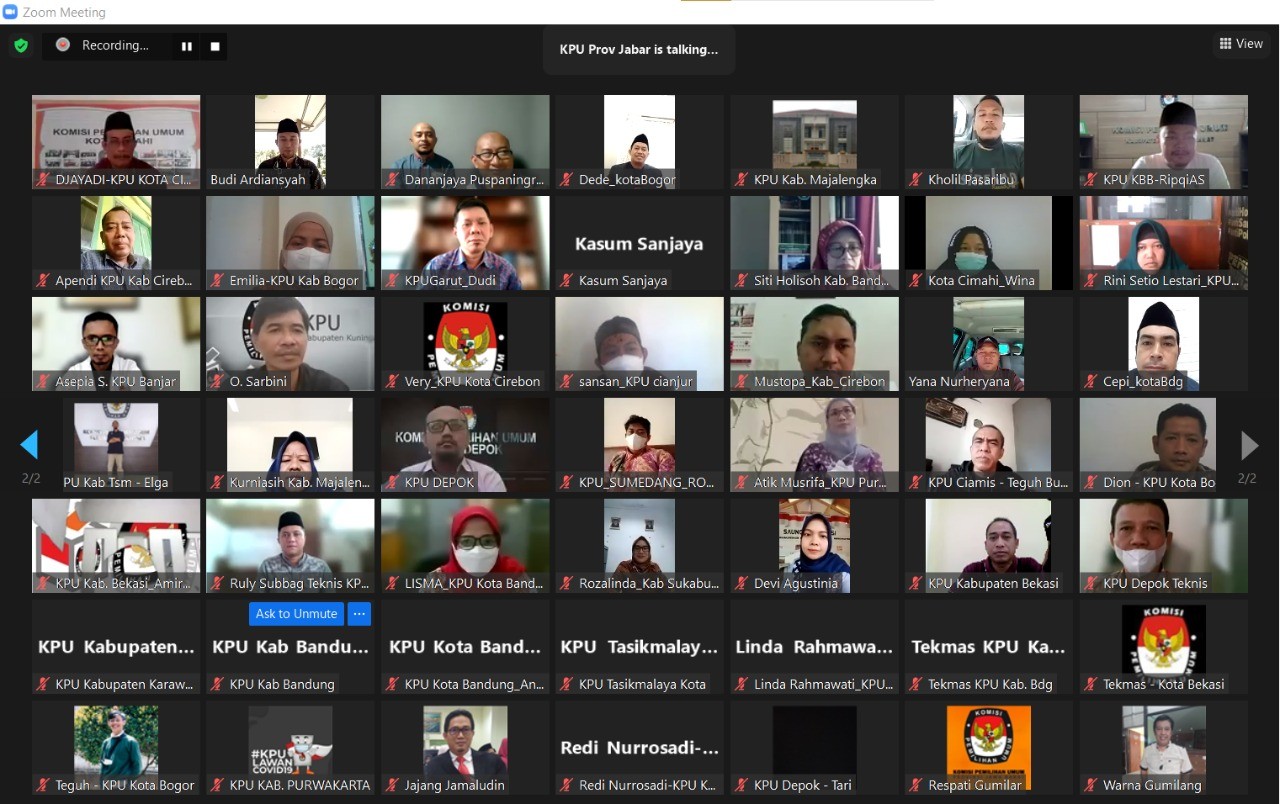 Bandung, jabar.kpu.go.id – Divisi Teknis Penyelenggaraan Pemilu KPU Provinsi Jawa Barat gelar diskusi lepas membahas persiapan tahapan penyelenggaraan pemilu dan pemilihan tahun 2024. Diskusi ini dipimpin oleh Anggota KPU Provinsi Jawa Barat, Endun Abdul Haq. Acara diskusi dilaksanakan daring dengan 27 KPU Kabupaten/Kota se-Jawa Barat, Jumat (8/4/22).