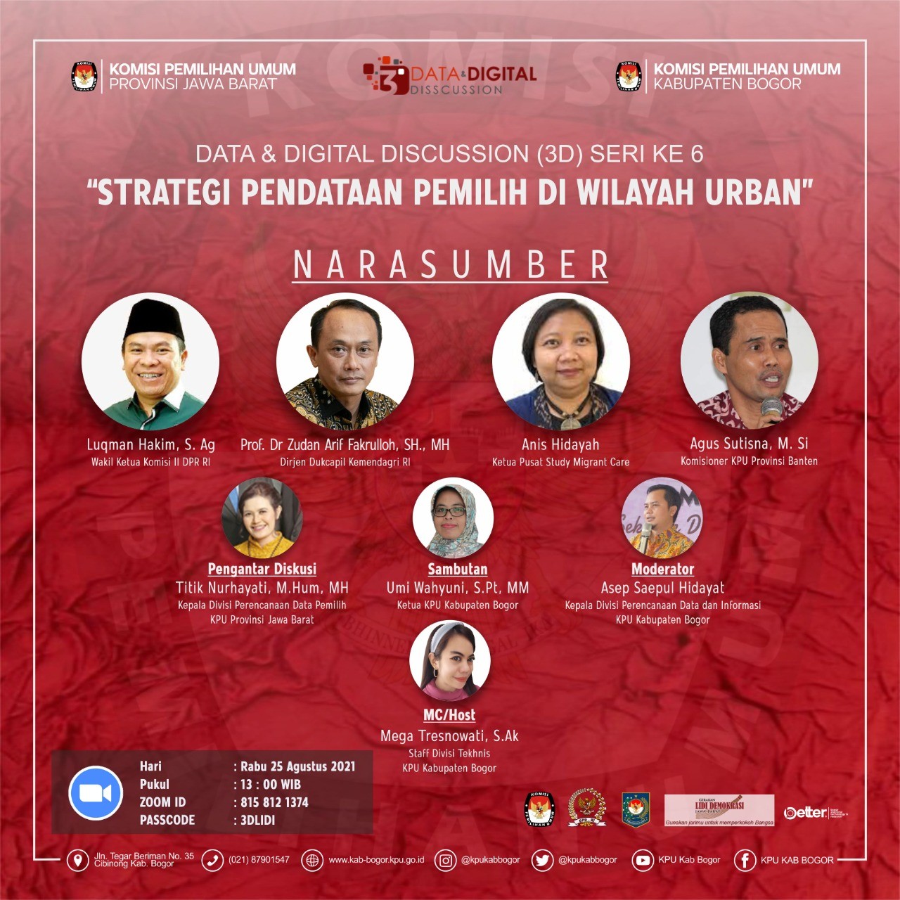 Bandung, jabar.kpu.go.id - KPU Provinsi Jawa Barat kembali menggelar diskusi berseri melalui Program Data and Digital Discussion (3D) seri 6 dengan tema “Strategi Pendataan Pemilih di Wilayah Urban”, Rabu, (25/8/2021).