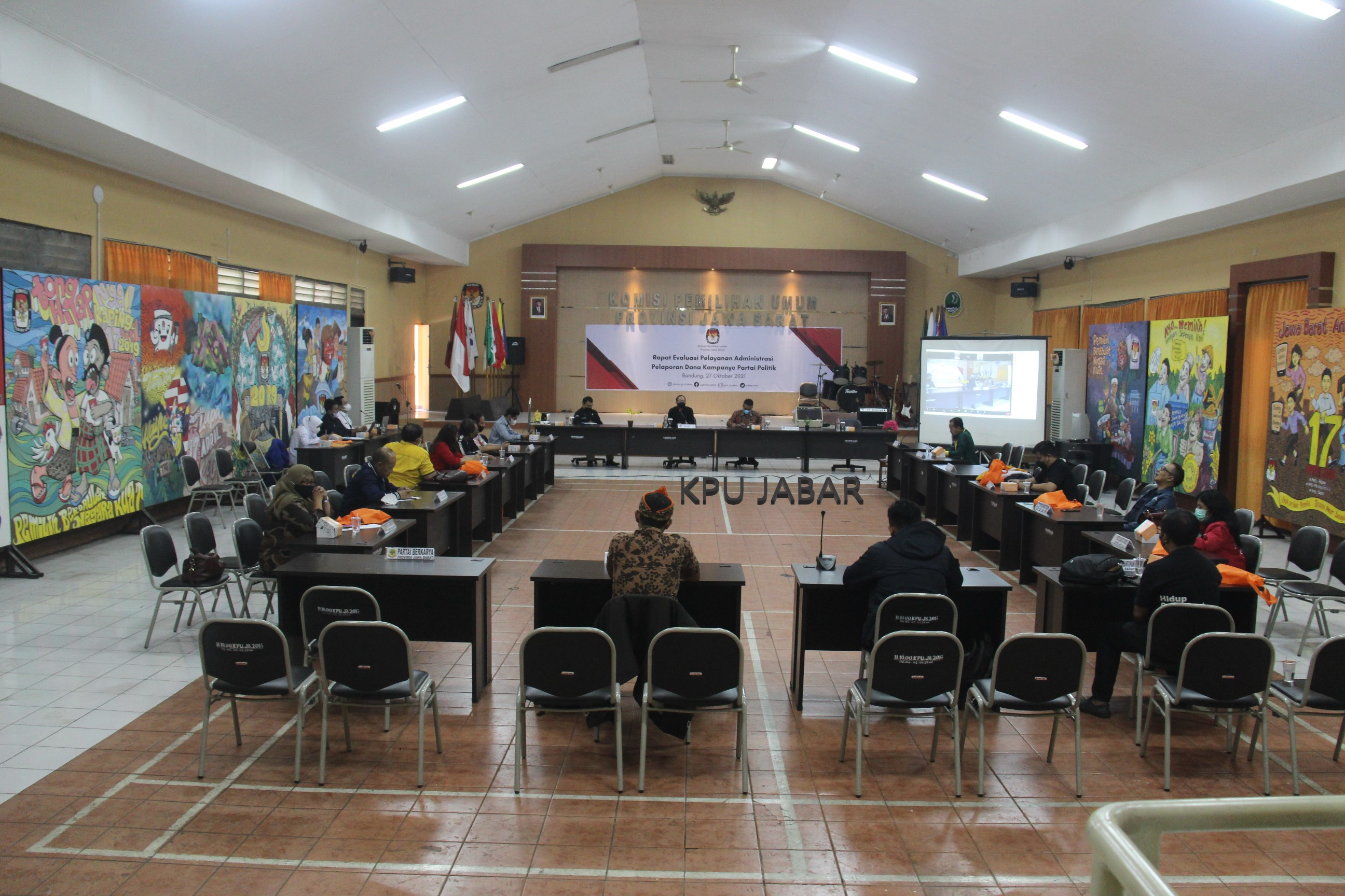 Komisi Pemilihan Umum (KPU) Provinsi Jawa Barat menggelar “Rapat Evaluasi Pelayanan Administrasi dana Kampanye Partai Politik”, Rabu (27/10/2021). Kegiatan tersebut dilakukan dalam upaya konsolidasi dengan partai politik terkait evaluasi dana kampanye 2019 serta persiapan menuju pemilu 2024.