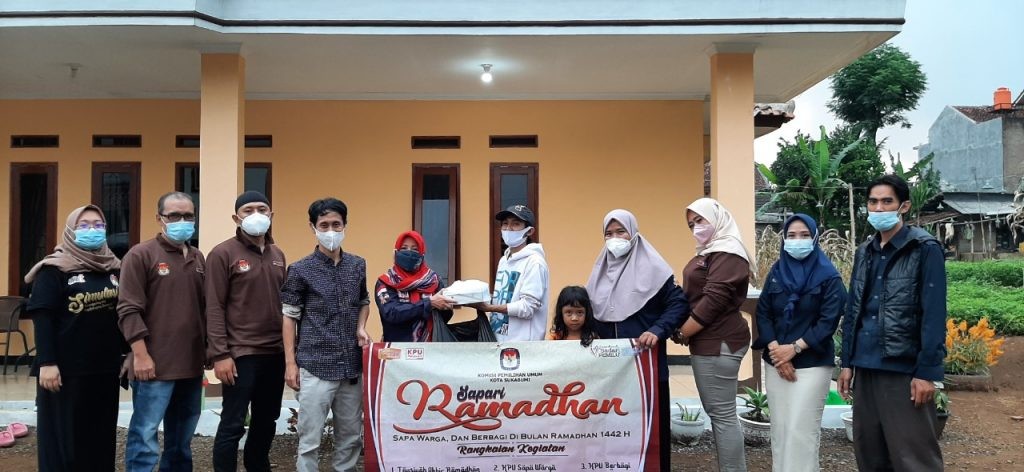 Sukabumi, 11 Mei 2021 – Disela sela mayoritas orang sedang sibuk mempersiapkan Hari Raya Idul Fitri yang tinggal menunggu beberapa hari lagi, beda hal nya dengan Keluarga Besar KPU Kota Sukabumi yang memanfaatkan bulan suci ini dengan semaksimal mungkin yaitu mengadakan kegaiatan bernama SAPARI (Sapa Warga dan Berbagi) di Bulan Suci Ramadhan dengan agenda kegiatan diantaranya pertama Tausiyah Akhir Ramadhan yang di isi oleh Rifqi Ali Mubarok (Ketua KPU Provinsi Jawa Barat) secara daring, kedua KPU Sapa Warga (Sosialisasi Daftar Pemilih Berkelanjutan dan Coklit Terbatas ), dan ketiga yaitu KPU Berbagi Sekaligus Sosialisasi Protokol Kesehatan yang merupakan bagian dari program Pendidikan Pemilih Berkelanjutan.