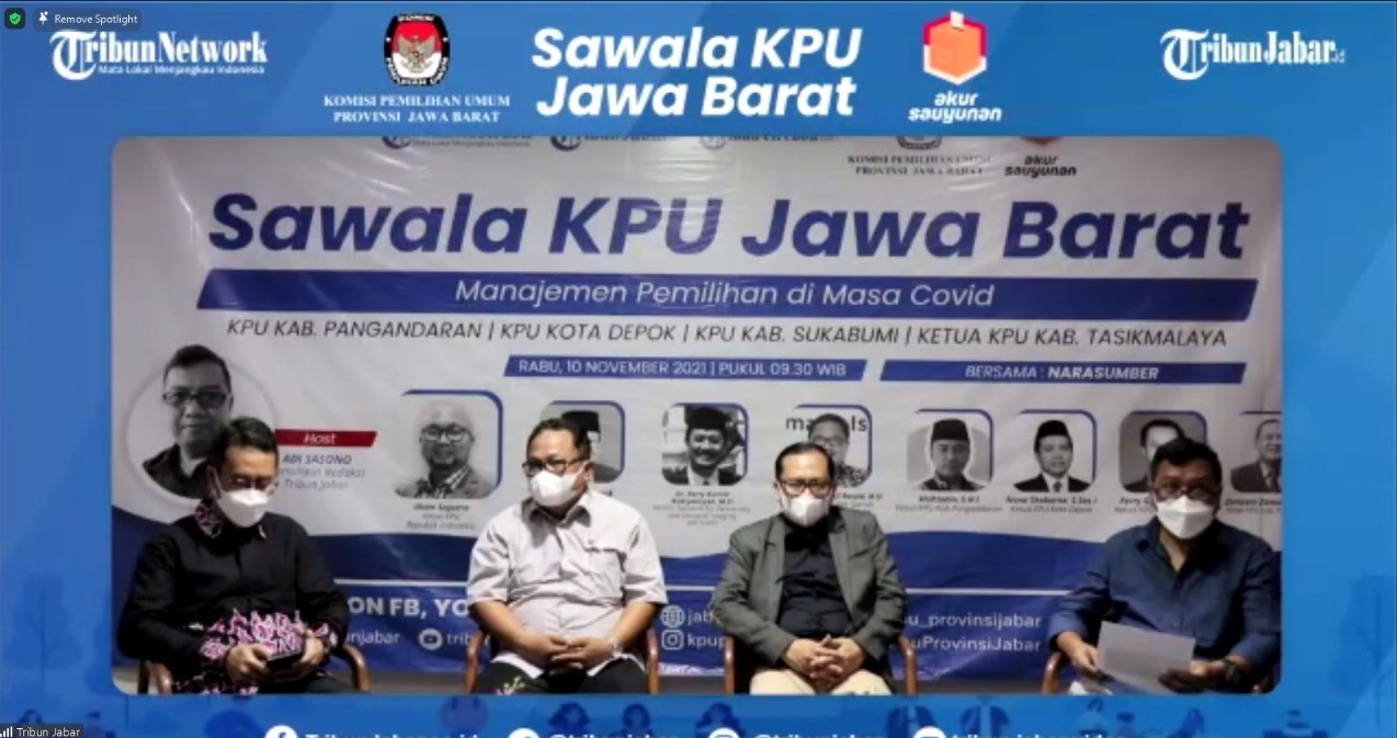 Kegiatan yang ini digelar secara zoom meeting merupakan kerja sama antara KPU Jawa Barat dengan harian Tribun Jabar. Kegiatan yang kedua kalinya ini mengangkat tema Manajemen Pemilihan di Masa Covid-19, yan gsiarkan langsung melalui Youtube dan Facebook.