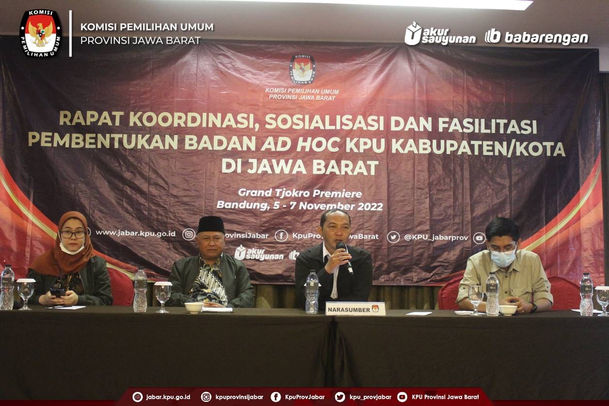 Ketua KPU Provinsi Jawa Barat menjelaskan masyarakat perlu mengetahui tata kerja badan ad hoc untuk Pemilu dan Pilkada 2024. Ada beberapa hal yang perlu dipersiapkan oleh KPU dalam konteks ini adalah kompetensi, minat, motivasi dan kesiapan fisik serta mental dari badan ad hoc yang nanti akan diseleksi. maka kegiatan tersebut sebaga upaya untuk mencari badan ad hoc dengan kapasitas penyelenggara Pemilu profesional, mandiri, dan berintegritas.