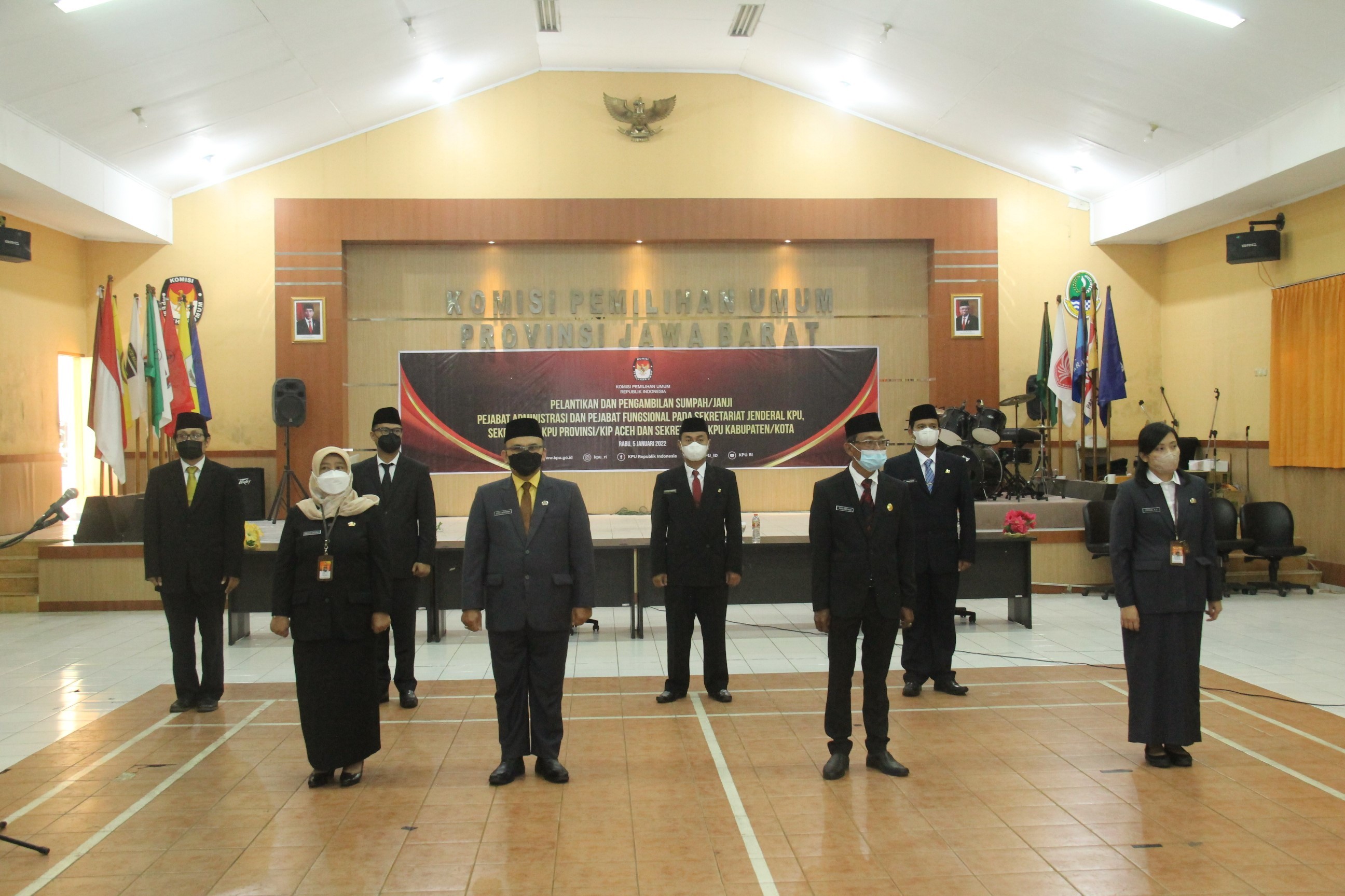 Pelantikan serentak tersebut digelar secara daring. Di Jawa Barat, pelantikan dan pengambilan sumpah/ janji itu digelar di Aula Setia Permana, Kantor Sekretariat KPU Provinsi Jawa Barat, Selasa, (5/1/2022). Dalam arahannya, Sekjen KPU RI, Bernad Dermawan Sutrisno mengatakan, pelantikan tersebut merupakan bagian dari implementasi PKPU 14 tahun 2020 tentang Tugas, Fungsi, Susunan Organisasi dan Tata Kerja (SOTK), terutama di tingkat sekretariat KPU Provinsi dan Kabupaten/Kota.