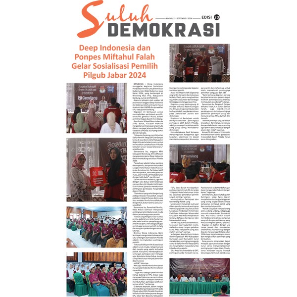 Suluh Demokrasi Edisi 20 Sabtu, 28 September 2024 07:00 159 Suluh Demokrasi Edisi 20 Klik di Sini Bagikan: Dilihat 159 Kali.