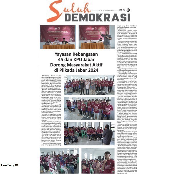 Suluh Demokrasi Edisi 22 Senin, 30 September 2024 07:00 191 Suluh Demokrasi Edisi 22 Klik di Sini Bagikan: Dilihat 191 Kali.