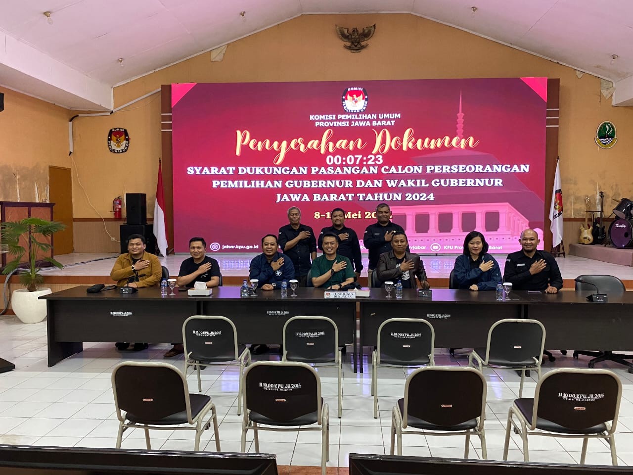 Adapun jumlah dukungan minimal yang harus diserahkan oleh bakal pasangan calon perseorangan Gubernur dan Wakil Gubenur di Provinsi Jawa Barat sebesar 2.321.469 dukungan dengan jumlah minimal sebaran di 14 Kabupaten/Kota. Selama kurun waktu 5 hari tersebut hingga hari terakhir pukul 23.59 WIB, tidak ada satu pun Bakal Pasangan Calon Perseorangan yang menyerahkan syarat minimal dukungan dan sebaran dalam Pemilihan Gubernur dan Wakil Gubernur Jawa Barat Tahun 2024 kepada KPU Provinsi Jawa Barat. "Kami beserta tim Penerimaan Dokumen Syarat Dukungan Pencalonan Perseorangan telah bersiaga selama lima hari di Kantor KPU Provinsi Jawa Barat menyampaikan tidak ada satu pun bakal pasangan calon perseorangan yang menyerahkan syarat minimal dukungan, termasuk pengajuan permohonan akses untuk aplikasi Silonkada maupun konfirmasi kehadiran dari bakal pasangan calon perseorangan" kata Adie Saputro, Ketua Divisi Teknis Penyelenggaraan yang didampingi oleh komisioner lainnya, Ahmad Nur Hidayat dan Hari Nazarudin beserta Ketua Bawaslu Provinsi Jawa Barat, Zacky Muhammad Zam Zam di Kantor KPU Provinsi Jawa Barat yang beralamat di Jl. Garut Nomor 11 Kacapiring Kota Bandung. Meskipun tidak ada (nihil), KPU Jabar akan tetap membuat Berita Acara Rekap Penerimaan Dukungan Bapaslon Perseorangan tersebut, "pungkasnya.