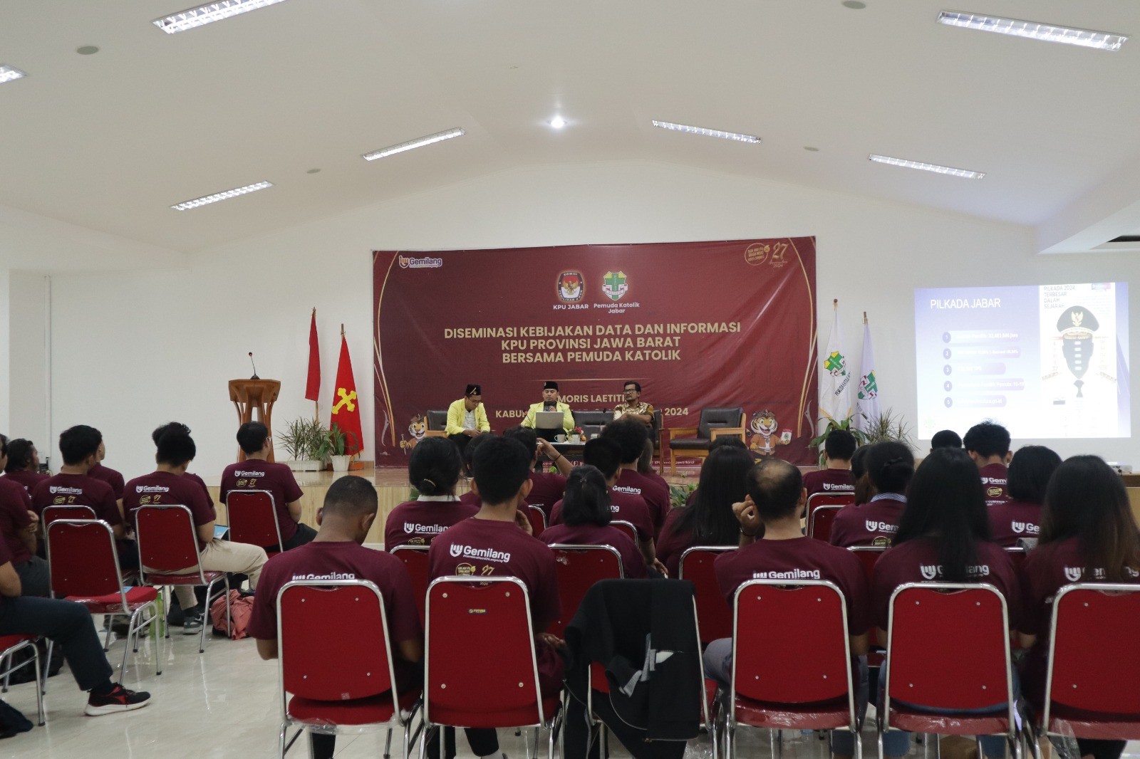 BOGOR - Komisi Pemilihan Umum (KPU) Provinsi Jawa Barat berkolaborasi dengan Pemuda Katolik Jawa Barat sukses menyelenggarakan kegiatan bertajuk Diseminasi Kebijakan Data dan Informasi.