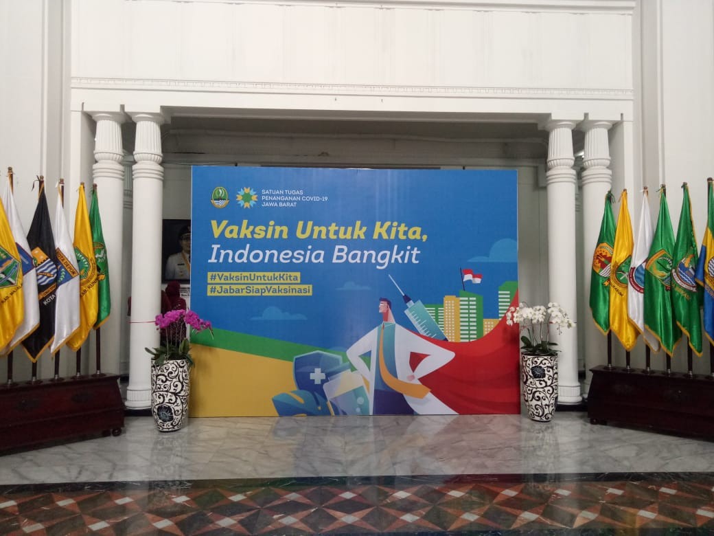 Pelaksanaan pemberian vaksin bertempat di Gedung Sate Bandung. Kemudian, proses pemberian vaksin tahap satu itu diawali dengan mencuci tangan, mendaftar untuk mendapatkan nomor antrian dan melakukan proses screening kesehatan yang bertujuan untuk memastikan kondisi kesehatan peserta vaksinasi dengan keadaan sehat dan stabil. Bila seluruh screening dinyatakan baik, maka vaksinasi dapat diberikan. Semua rangkaian vaksinasi ini tentunya diikuti dengan penerapan protokol kesehatan.